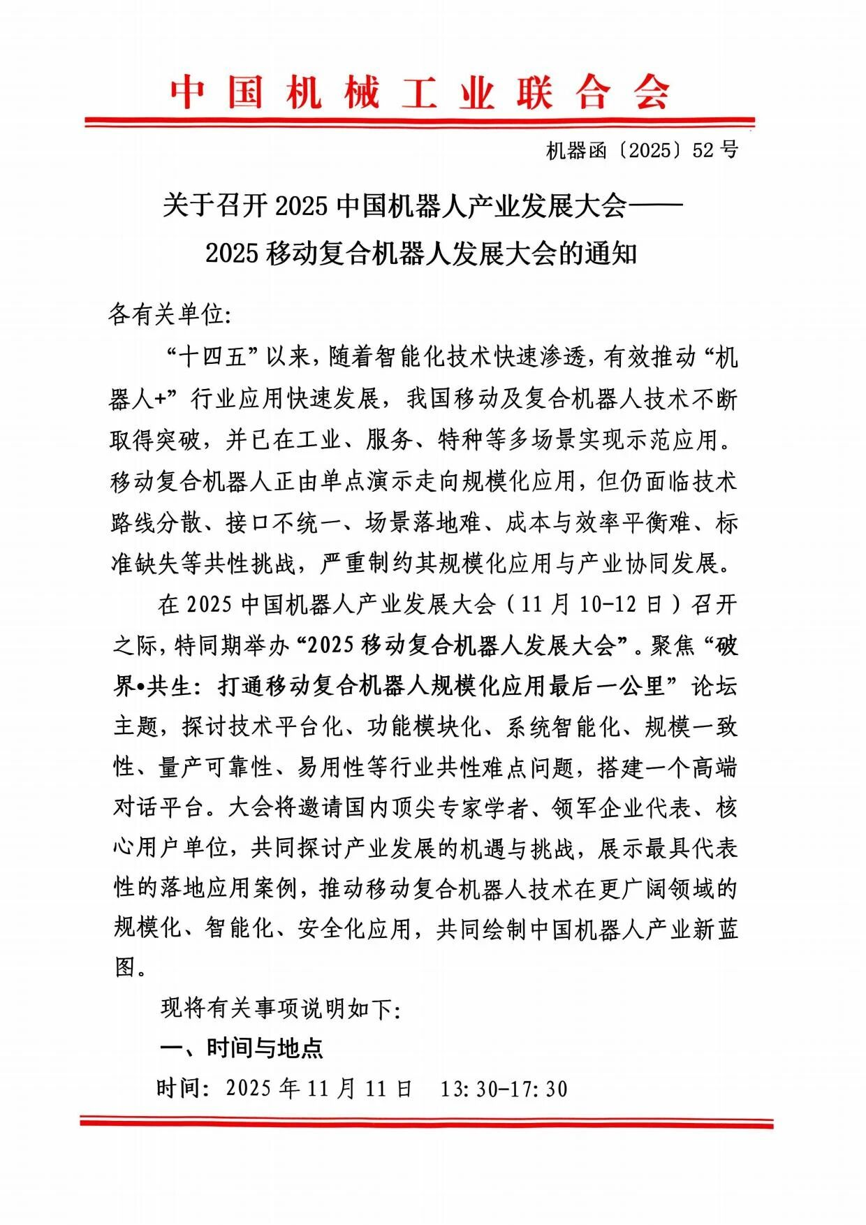 关于召开2025中国机器人产业发展大会—2025移动复合机器人发展大会的通知