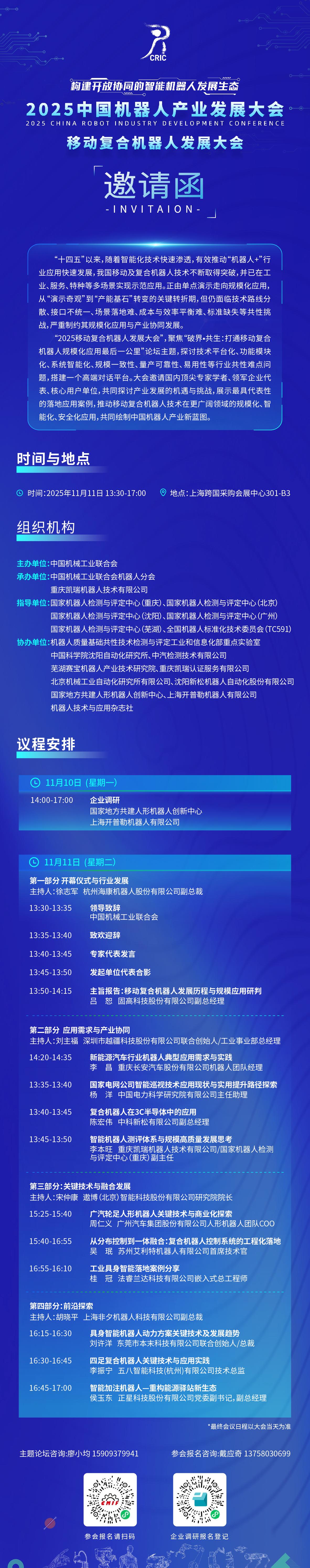 议程发布 | 2025中国机器人产业发展大会-移动复合机器人发展大会