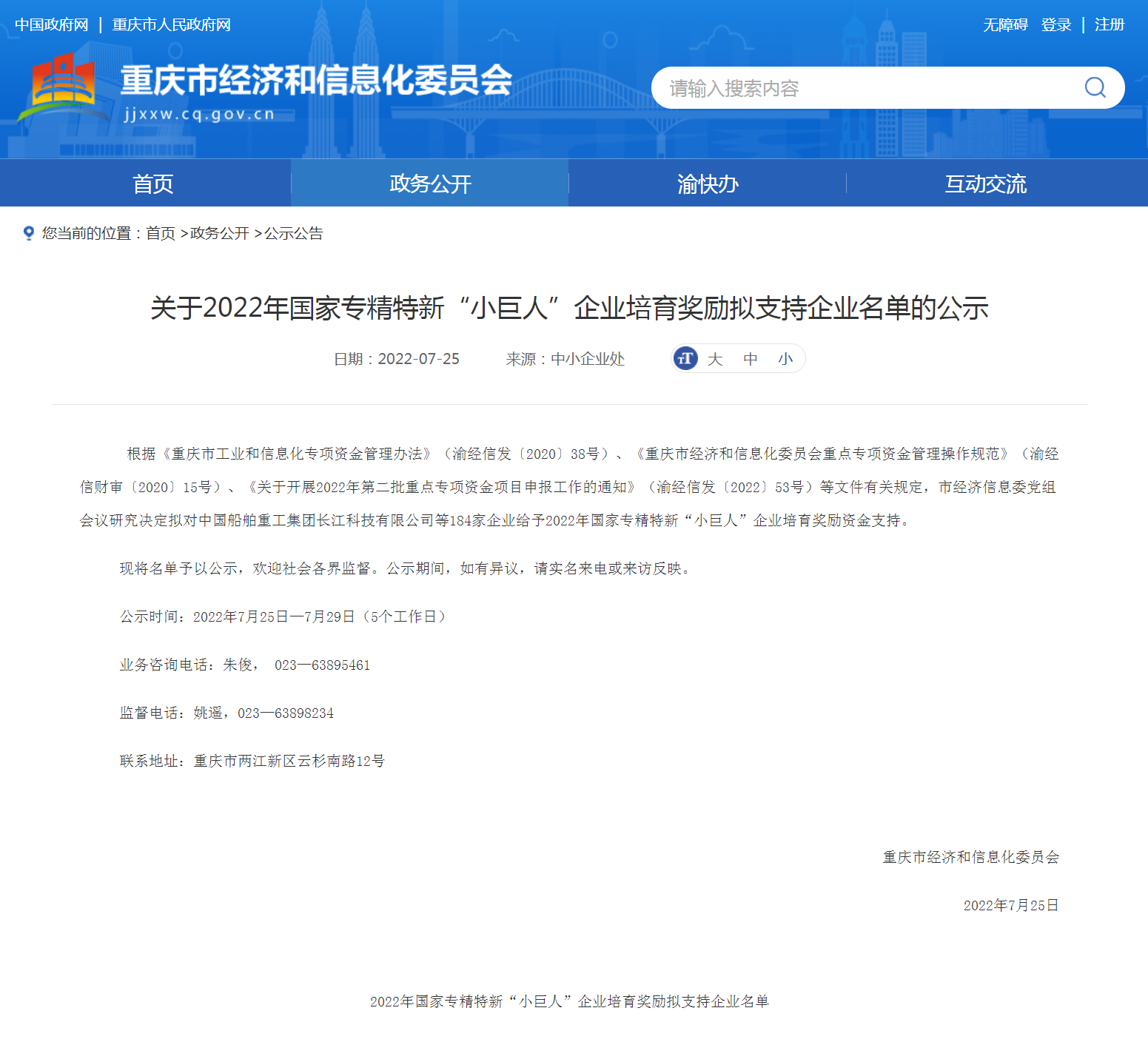 图片 | 截图于重庆市经济和信息化委员会官网